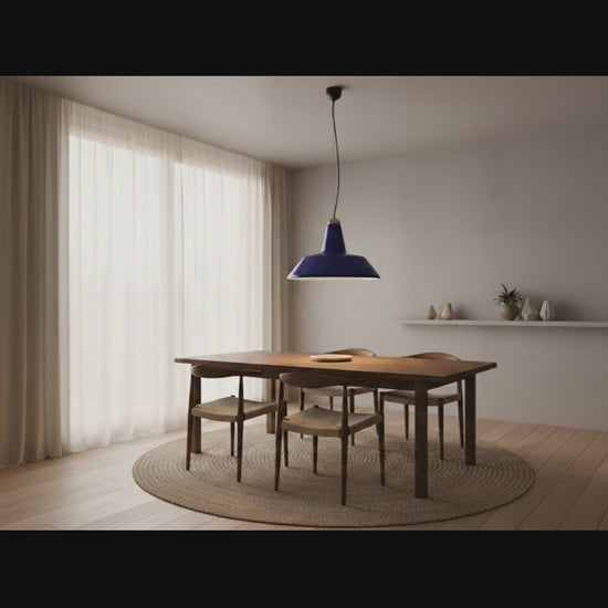 La forma, che riprende le linee tipiche delle lampade da fabbrica o da officina, viene reinterpretata attraverso la preziosità del materiale, rendendo questo oggetto unico nel suo genere. È la scelta ideale per illuminare un tavolo da pranzo o una cucina contemporanea, portando un accento di colore vibrante e sofisticato.